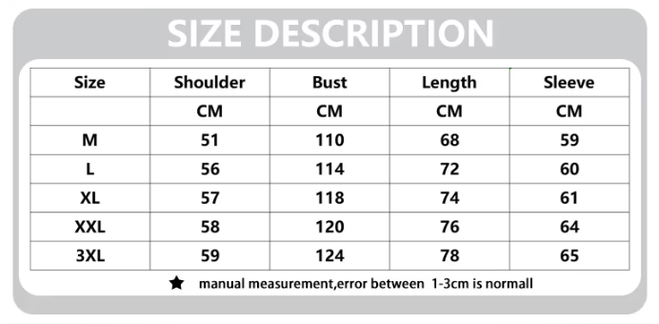 Size: M, L, XL, XXL, 3XL