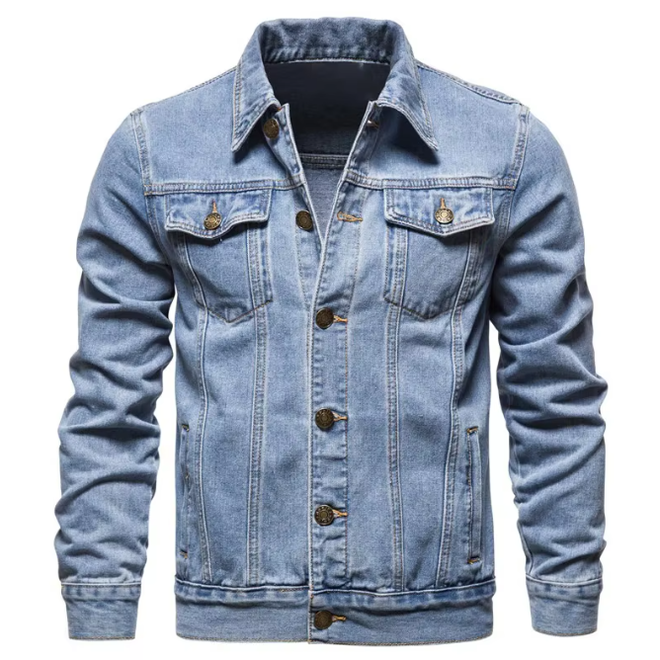 2 Pcs Mens Classic Blue Denim Jacket with Lapel Button