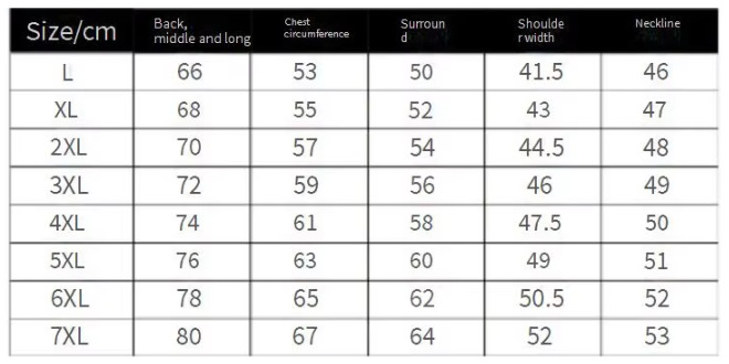 Size: L, XL, 2XL, 3XL, 4XL, 5XL-7XL (please mark it in the order)