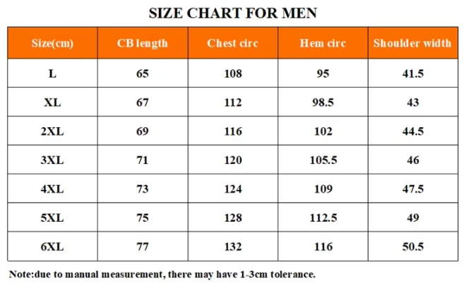 Size: L, XL, 2XL, 3XL, 4XL, 5XL-6XL (please mark it in the order)