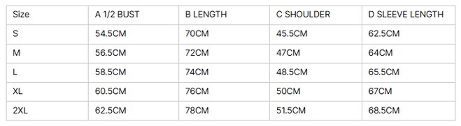 Size: S, M, L, XL, 2XL