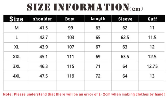 Size: M, L, XL, XXL, 3XL, 4XL